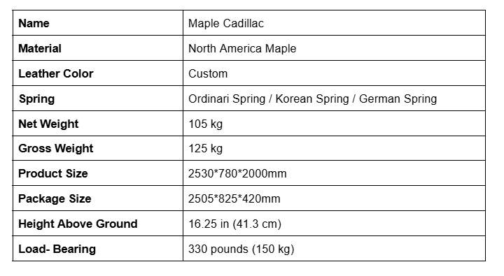 White maple imported from North America, microfiber leather From the stainless steel and anodized aluminum metal parts to the meticulously designed leather-upholstered bed The bed, specifically tailored for our products, boasts EVA foam padding of high density